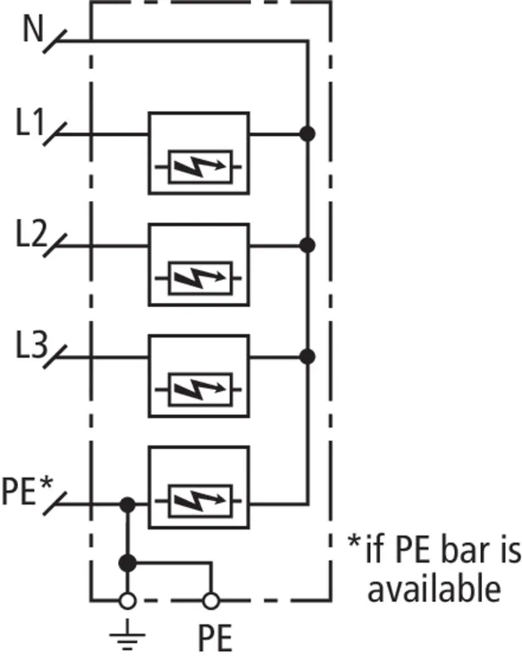| Lightning impulse current (10/350 µs) [N-PE] (Iimp ) | 30 kA |
