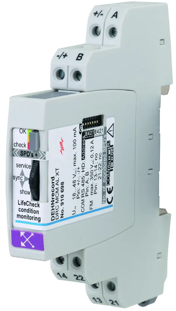 - Monitoring of up to 4 surge arresters with remote signalling contacts and up to 150 BLITZDUCTOR XT arresters (RS 485)