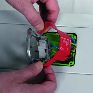 • Plastic snap-on retaining ring for easy installation in already mounted socket outlets