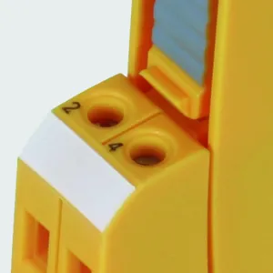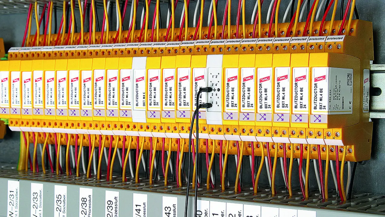 Space-saving surge arrester module with RFID LifeCheck for protecting four lines of stranded signal interfaces. If LifeCheck detects thermal or electrical overload, the arrester has to be replaced. This status is indicated contactlessly by the DEHNrecord LC / SCM / MCM reader.