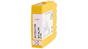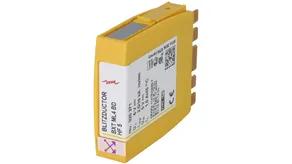 Space-saving surge arrester module with RFID LifeCheck for protecting two single lines with common reference potential as well as unbalanced interfaces and one pair of unearthed balanced interfaces. LifeCheck detects thermal or electrical overload after which the arrester has to be replaced. The status is indicated contactlessly by DEHNrecord LC / MCM.