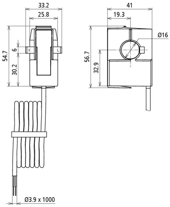 Split-core current transformer for electronic measurement of alternating current (AC) with galvanic isolation between the primary circuit (power) and secondary circuit (measurement) up to 300 V CAT III.