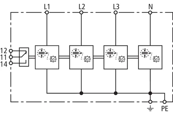 | Lightning impulse current (10/350 µs) [L1+L2+L3+N-PE] (Itotal ) | 30 kA |
