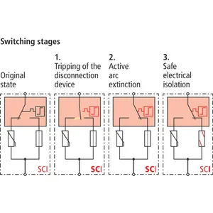 - Combined disconnection and short-circuiting device with safe electrical isolation in the protection module (patented SCI principle)