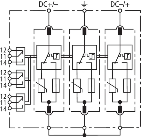 | Nominal discharge current (8/20 µs) [(DC+/DC-) --> PE] (In ) | 12.5 kA |