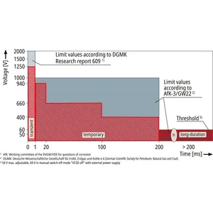 | Long-duration limiting voltage (a.c.rms) (> 200 ms) | max. 50 V (adjustable 3 to 50 V) *3) |