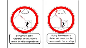 Bei Gewitter ist der Aufenthalt im Umkreis von 3 m um die Ableitung verboten!