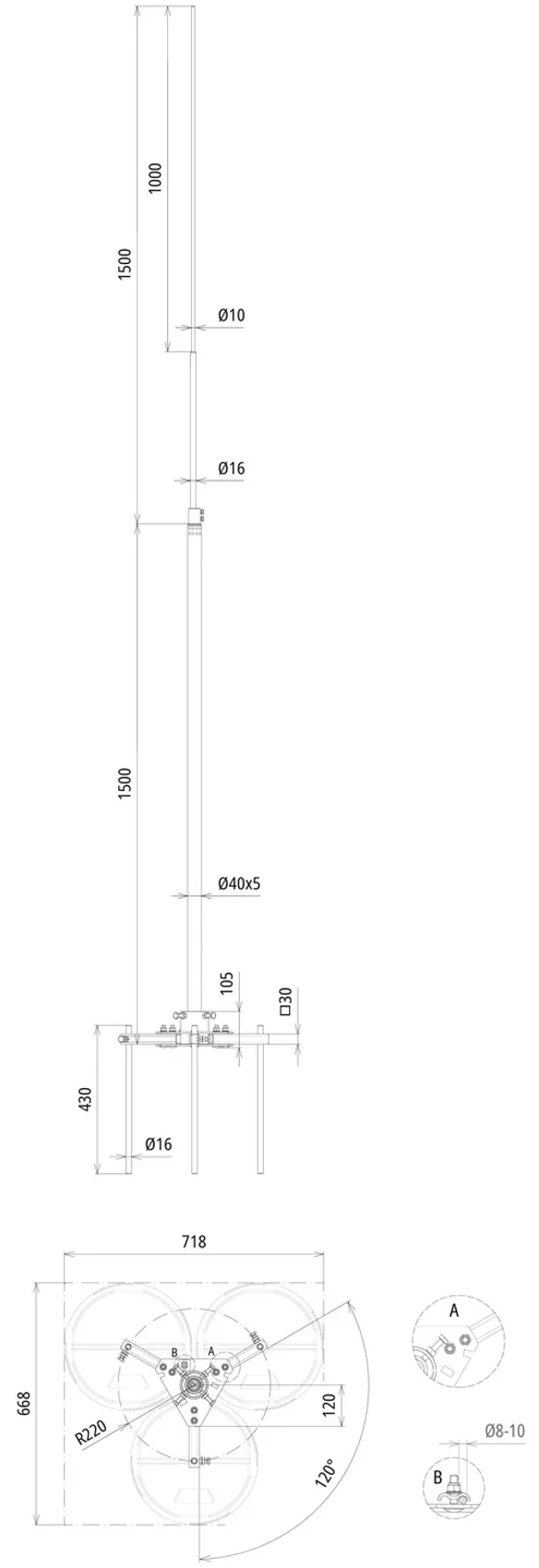 | Space required for tripod with 3 bases, 8.5 kg each (l x w) | 730 x 800 mm |