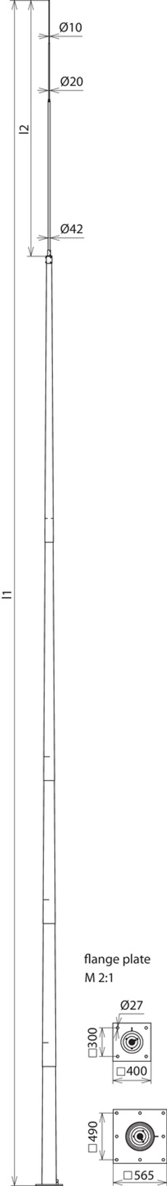 | Flange plate | 8x Ø27 mm for 8x M24 (490 x 490 mm) |