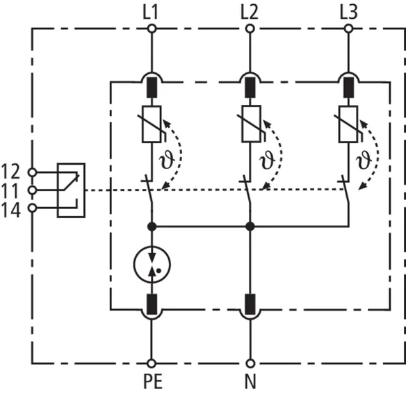 | Total discharge current (8/20 µs) [L1+L2+L3+N-PE] (Itotal ) | 8 kA |
