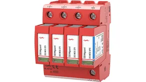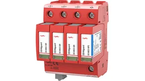 Modular surge arrester with a high total discharge capacity in the N-PE path for TT and TN-S systems (3+1 configuration). Meets the stricter safety requirements as outlined in DIN VDE 0100-534 for use at the feeding point of the electrical installation; with floating remote signalling contact.