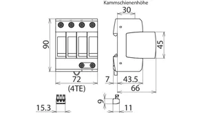 | SPD according to EN 61643-11 / IEC 61643-11 | Type 2 + Type 3 / class II + class III |
