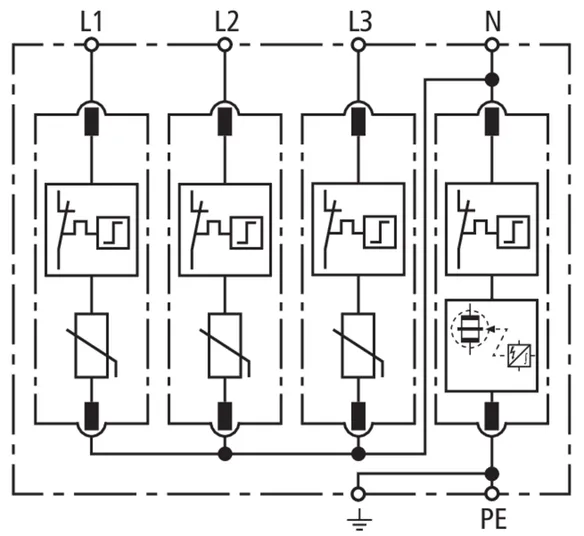 | Max. discharge current (8/20 µs) [N-PE] (Imax ) | 120 kA |