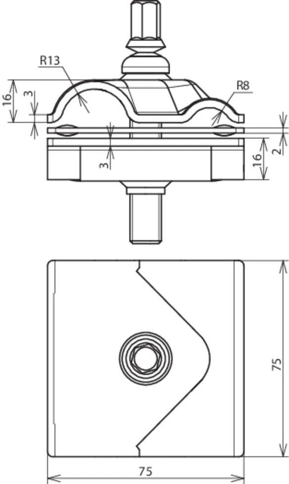 Same design as Part No. 308 041, but with StSt (V2A) M12x65 mm AF10 tear-off screw, with tear-off torque 35 +/-3 Nm, instead of standard hexagon head screw