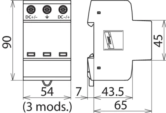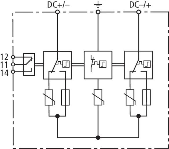 | Nominal discharge current (8/20 µs) [(DC+/DC-) --> PE] (In ) | 12.5 kA |