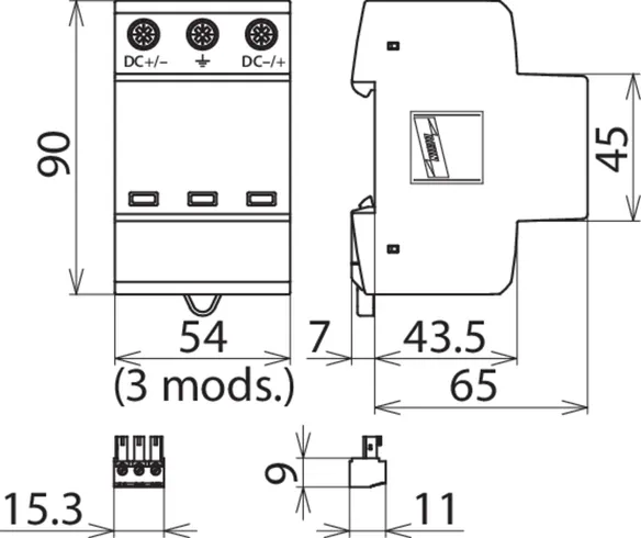 | Max. discharge current (8/20 µs) [(DC+/DC-) --> PE] (Imax ) | 25 kA |