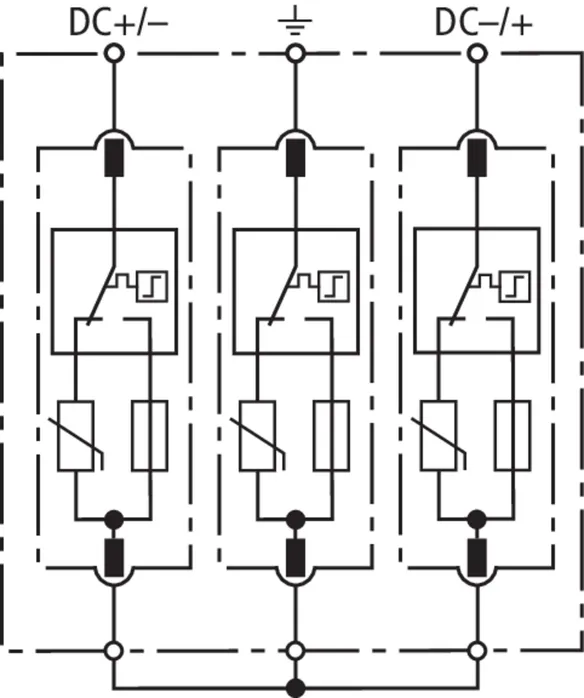 | Nominal discharge current (8/20 µs) [(DC+/DC-) --> PE] (In ) | 12.5 kA |