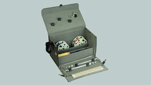 The earth resistance measuring equipment in a case comes with carrying strap for easy transport.