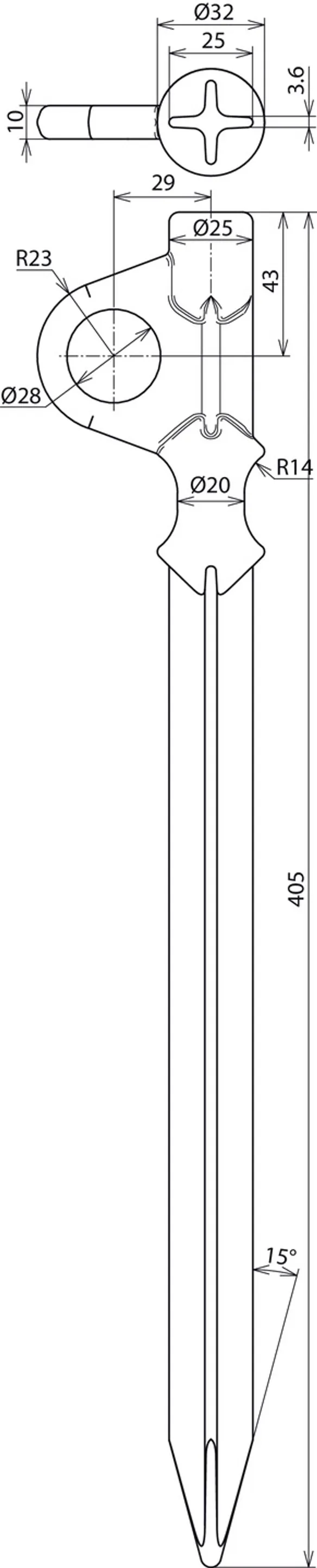 Anchoring pole, MCI/tZn, 405 mm long