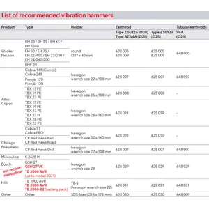| Note: It is recommended to use a hammer with a minimum striking force of 26 joules. The maximum drive-in depth depends on the soil conditions. | |
