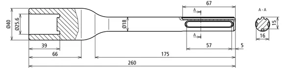 | Hole (d1 x l1) | 25,6 x 39 mm |