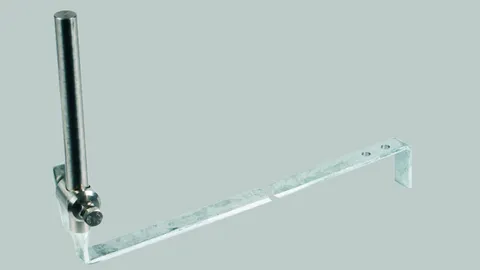 Footing for fitting air-termination rods on gable roofs with anti-rotation lock (toothed washer) and lock nut as well as bores for screwing the brace on the roof battens. At the chimney the air-termination rod has to be fixed additionally e.g. by means of DEHNiso spacer.