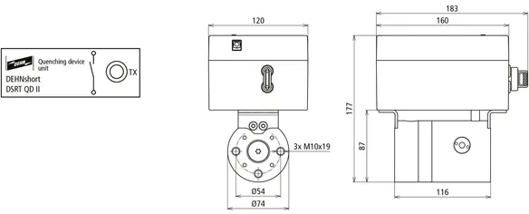 | Quenching device outputs | Optical fibre cable (at least 43 mA) (2x TX) |