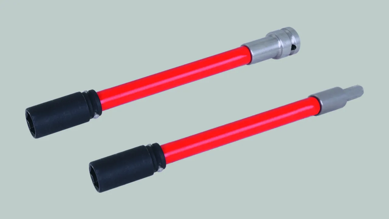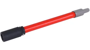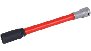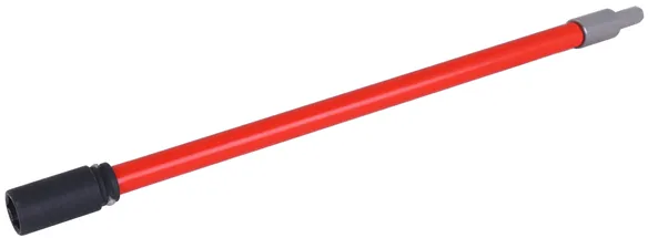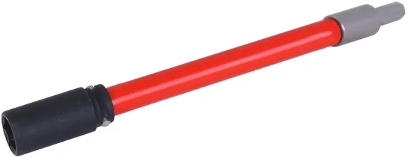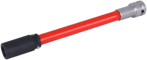 Outil de rallonge en acier inoxydable, douille à ressort magnétique (taille 17), logement carré 1/2 pouce, pour utilisation avec une clé à choc. Avec poignée rouge en rotation libre. Contenu supplémentaire : joint torique et goupille de sécurité.