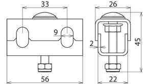 | Trous de montage pour le téléphérique | [4x] 9 x 20 / [1x] 9 x 9 mm |