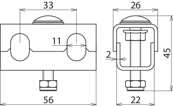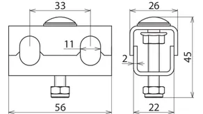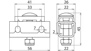 - Raccordement uniquement avec conducteur d‘équipotentialité en anneau 35 mm², référence 832 838 (câble en cuivre étamé)