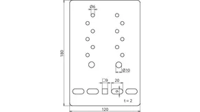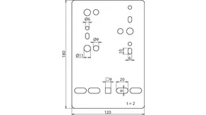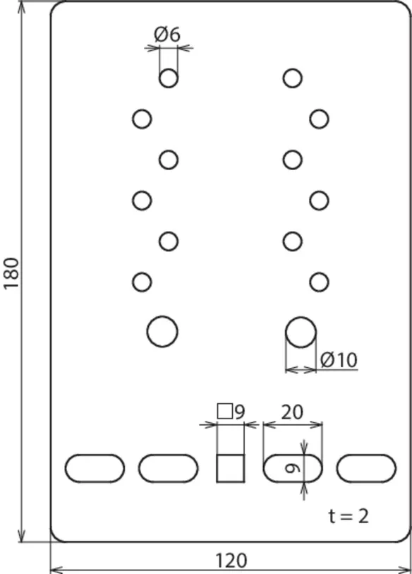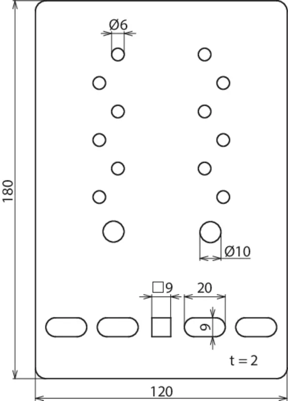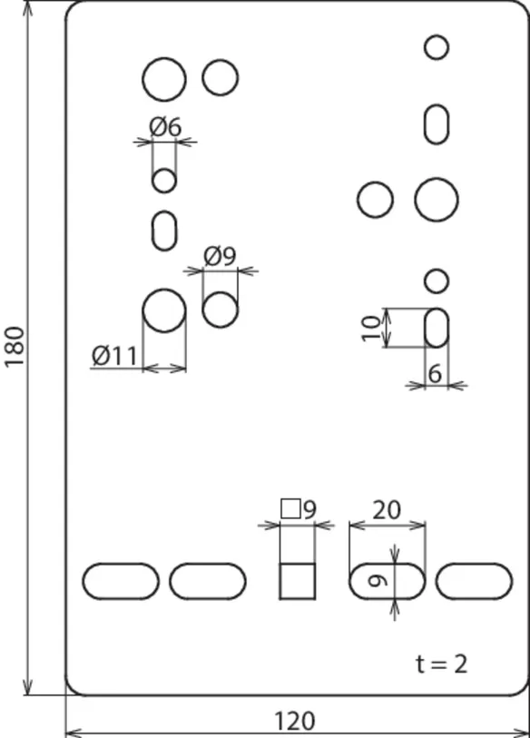| Trous de montage pour le rail de la grille | Piste de quadrillage [4x] 9 x 20 / [1x] 9 x 9 mm |