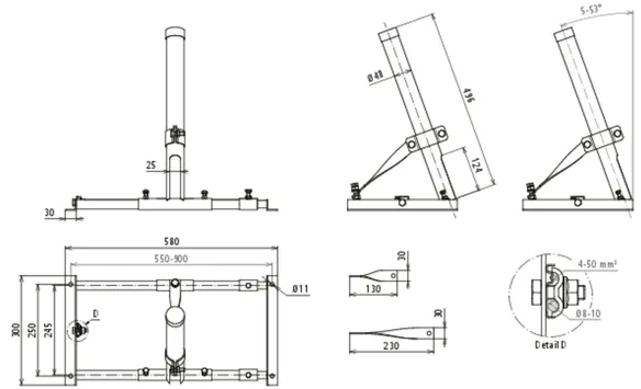 Galerie de toit en métal NIRO Barre de toit en métal pour montage vertical pour les dispositifs de capture HVI ou les parafoudres