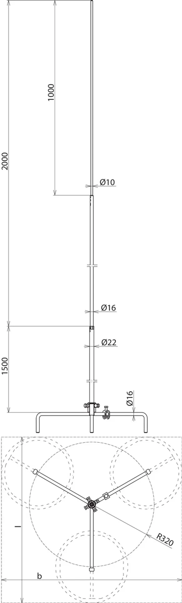 Encombrement du trépied - 3 plots à 17 kg (longueur x largeur) 850 x 930 mm