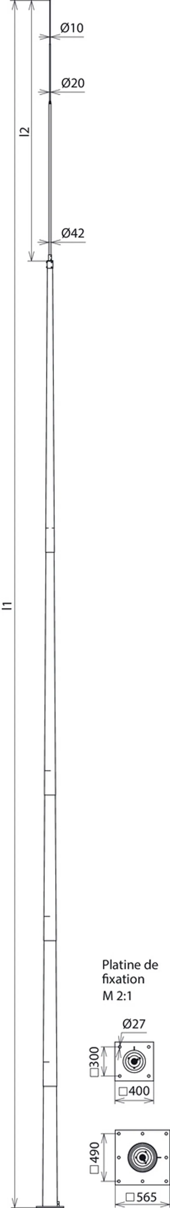 | Version - platine de fixation | 8x Ø27 mm pour 8x M24 (490 x 490 mm) |