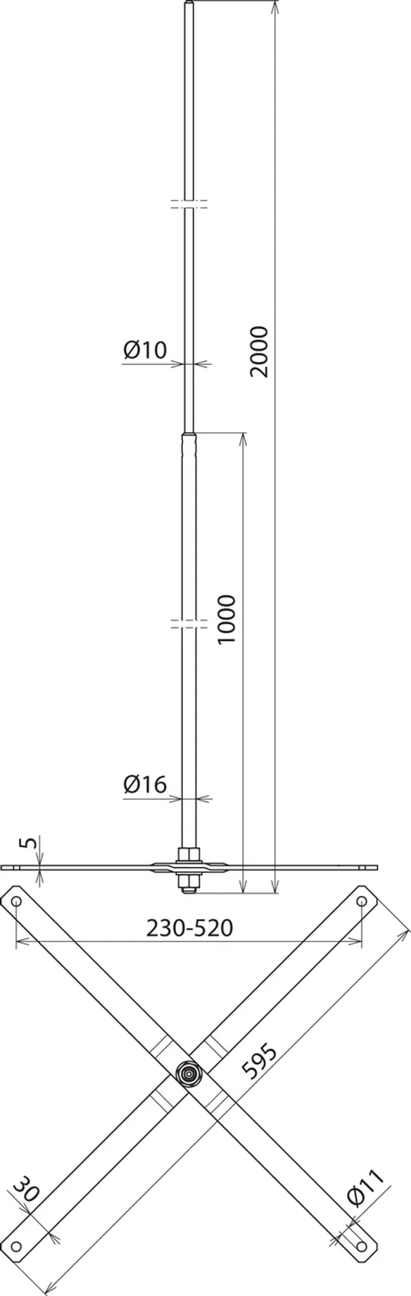 | Ecartement des profilés | 230-520 mm |