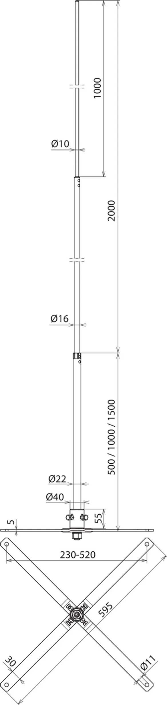 | Longueur totale (Ø22/16/10 mm) | 2500 mm |