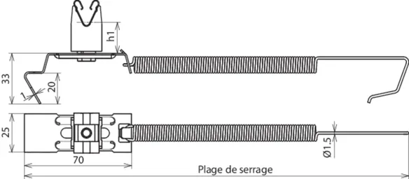 Avec fixation par ressort de traction en INOX, avec support pour conducteurs DEHNgrip, guidage libre du conducteur, réglable latéralement.