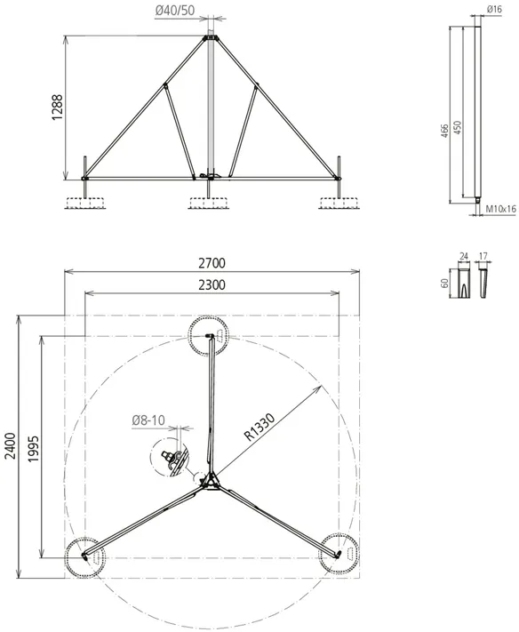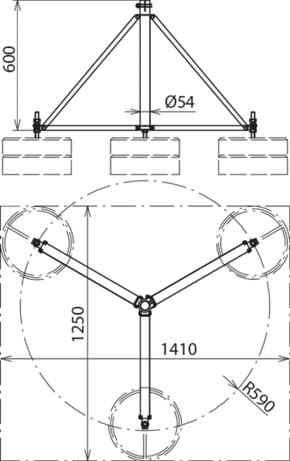 | Encombrement - trépied | 2300 x 1995 mm |