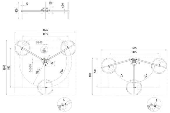 | Encombrement - trépied | 1880 x 1880 mm |
