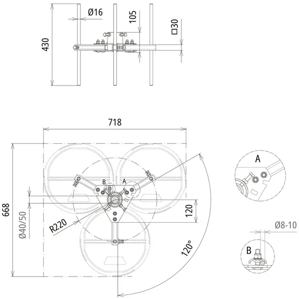 | Rayon | 220 mm |