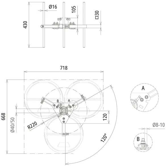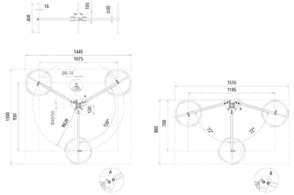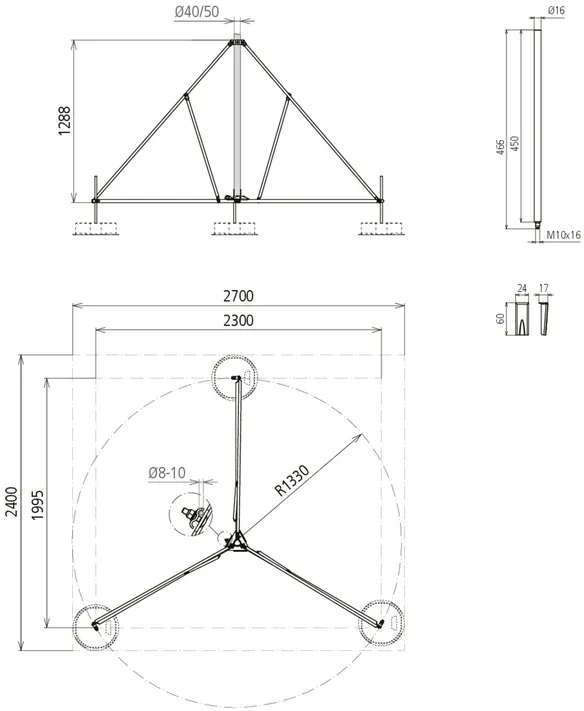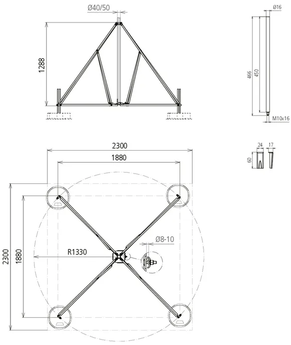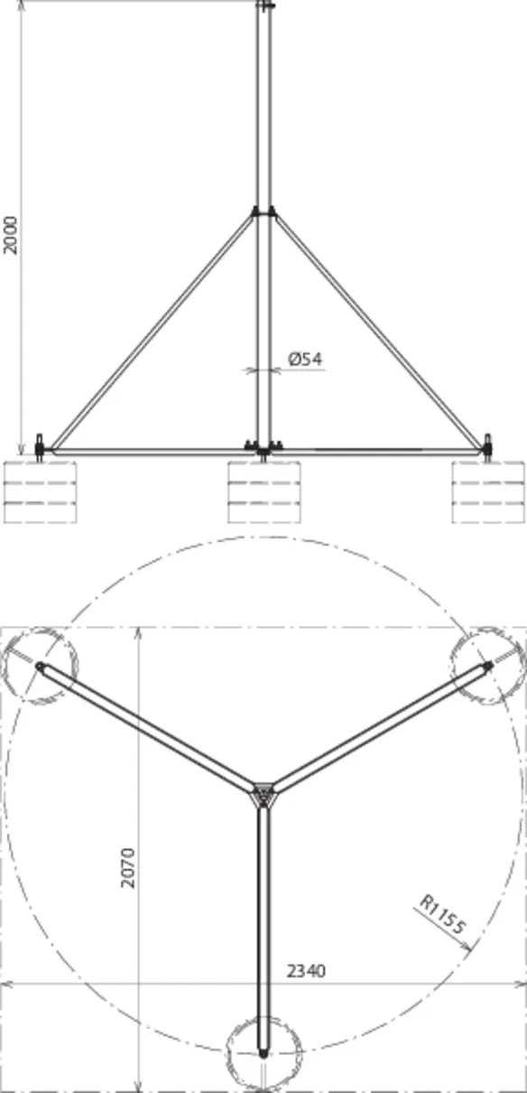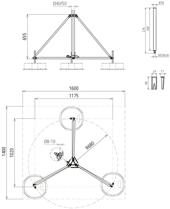 Pour les tiges de capture Ø40 mm ou les tubes supports Ø50 mm, longueur 3200 mm (par ex. références 105 440 ou 105 300), sans fixation supplémentaire aux éléments de construction.