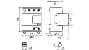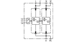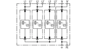 Set composé de parafoudres enfichables, y compris rail de câblage de modules isolé, utilisable dans les systèmes d’onduleurs avec anti-PID actif avec un décalage DC maximal de 750 V DC. Câblage des systèmes de prise de terre conformément à IEC 60364-4-44, tableau 44.A1 - RE et Z ainsi que RE et RA liés.