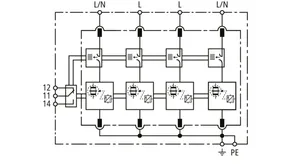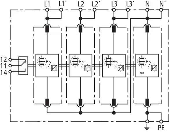 Parafoudre combiné modulaire pour systèmes TT et TN-S avec une tension nominale de 230 / 400 V (mode de connexion 3+1) ; version FM avec contact sec de télésignalisation.