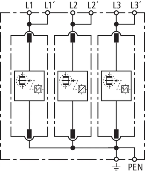 Courant de choc de décharge (10/350 µs) [L1+L2+L3-PEN] (Itotal ) 75 kA