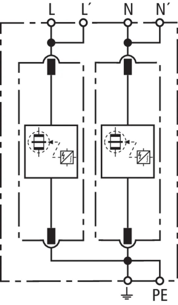 Parafoudre combiné modulaire pour système TN uniphasé.