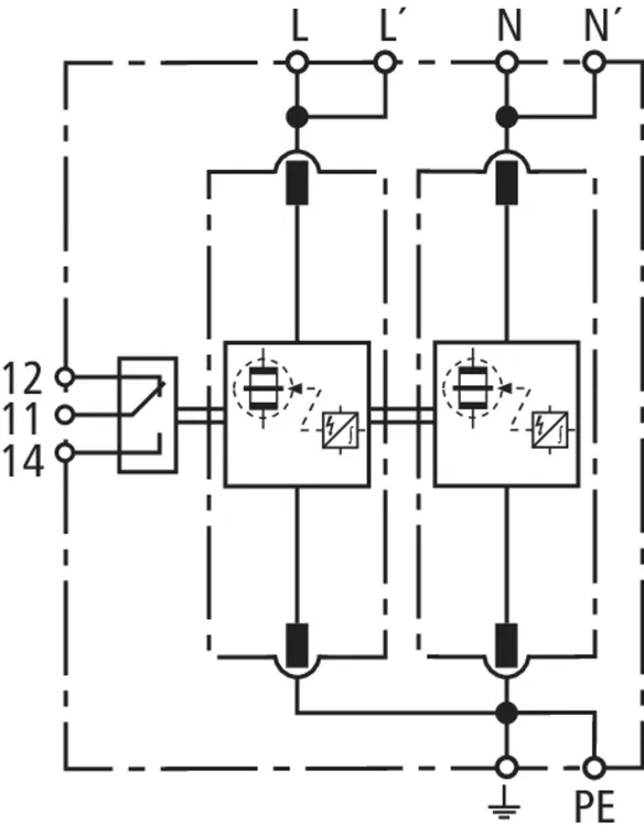 Parafoudre combiné modulaire pour système TN avec une tension nominale de 230 V (mode de connexion 2+0) ; version FM avec contact sec de télésignalisation.