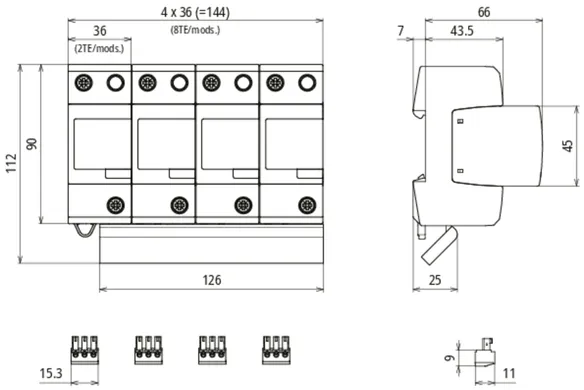 Parafoudre combiné enfichable, modulaire, quadripolaire