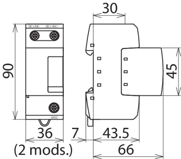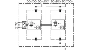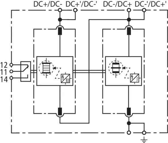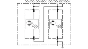 | Courant de choc de décharge (10/350 µs) (DC+/DC- -> DC-/DC+) / (DC-/DC+ ->9) (Iimp ) | 25/50 kA |