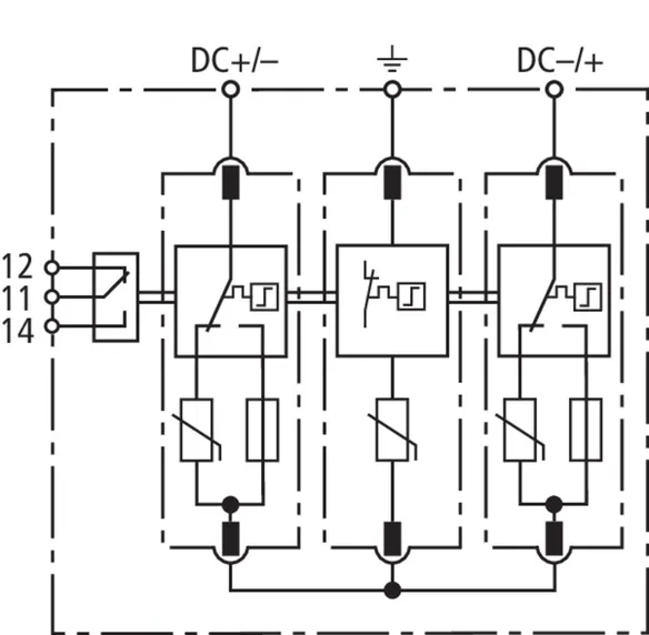 | Courant nominal de décharge (8/20 µs) [(DC+/DC-) --> PE] (In ) | 12,5 kA |