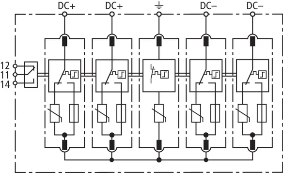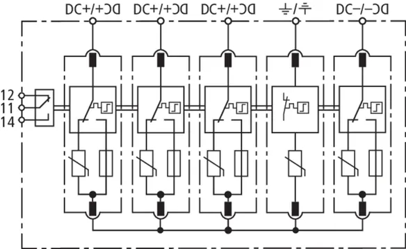 | Courant max. de décharge (8/20 µs) [(DC+/DC-) --> PE] (Imax ) | 25 kA |